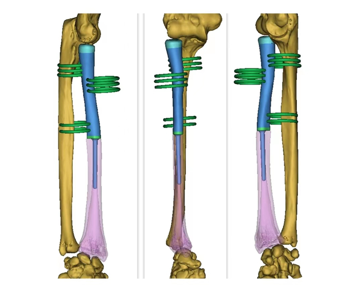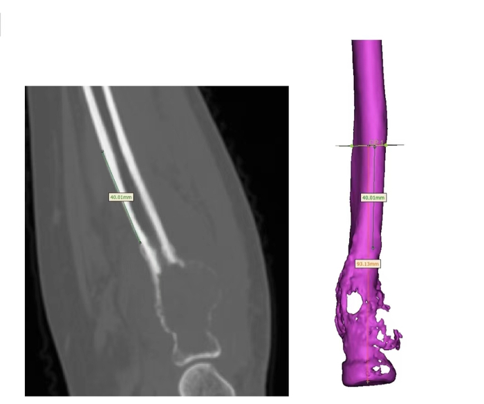 根据患者CT数据逆向生成骨骼模型依据临床医师要求,距病灶远端4mm截骨