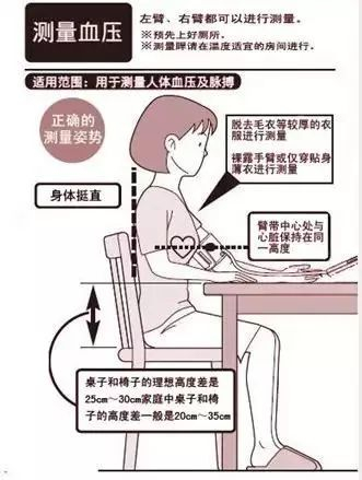 测量血压时,应坐在有靠背的座椅上,双腿自然下垂,上臂置于桌上,肱动脉与心脏位置平齐。将血压计袖带紧缚于被测者上臂,气囊中部对准肱动脉,袖带的松紧以恰能放进一个手指为宜。袖带下缘在肘弯上2~3厘米左右。