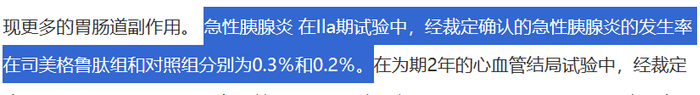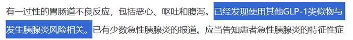 实际上,无论是司美格鲁肽还是利拉鲁肽均在说明书中,对胰腺炎和胃肠道相关不良事件进行表述。
