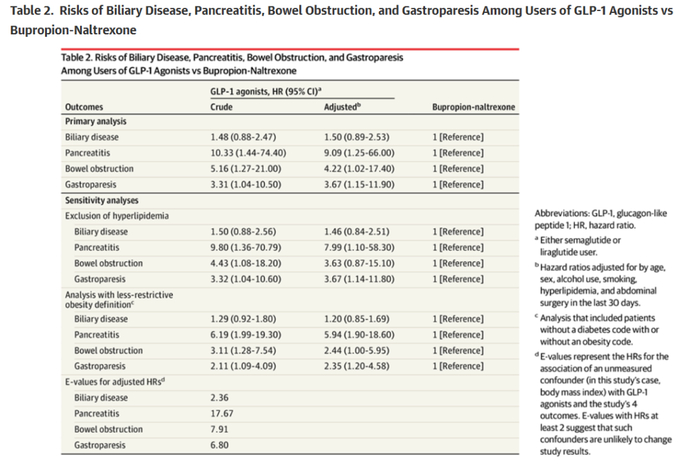 报告中指出,GLP-1类减肥药与复方制剂安非他酮/纳曲酮(另一种已上市的减肥药)相比,更易发生严重副作用——使用GLP-1类减肥药出现胃麻痹的相关风险增加近4倍,胰腺炎风险增加9倍,肠梗阻风险增加了4倍。