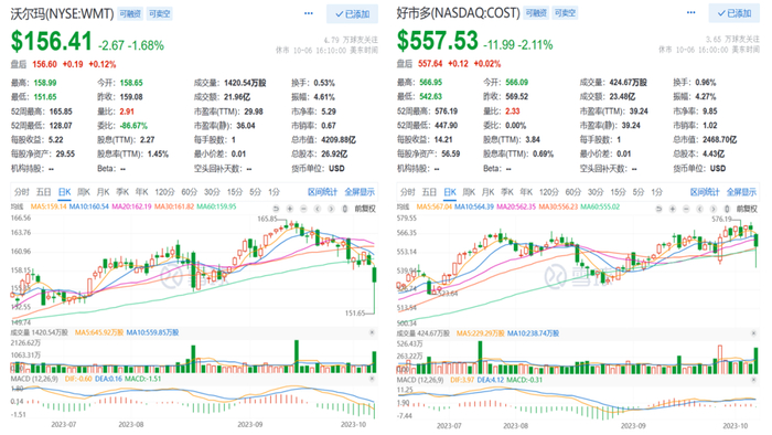 沃尔玛与好市多的近期股价