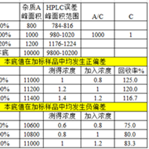 由以上几个回收率偏差的例子得出闭环策略:a杂质的定量方法中,供试品本底值的响应水平需要远远小于对照品的响应值,可以通过供试品精制获得较小本底值的样品,通过供试品稀释减小本底值对测定结果的影响,或者改变定量方法为标准加入法测定;b对照品的使用中,需要提前了解对照品的理化性质,如引湿性等,避免因为对照品赋值不准造成的回收率结果偏差;c积分方法的选择,对照品和供试品溶液的积分参数如峰宽,斜率等直接影响峰面积的参数需要一致,在调整积分参数的时候优先以供试品为参考,同时兼顾主成分与杂质的积分合理性,避免导致杂质的积分过大,当然在积分方式影响较大的方法中,通过改变色谱柱。柱温或流速等方式优化方法更为重要;d供试品溶液稳定性的提前考察,必要时选择进样室控温的方式或者临用现制的方式进行方法验证;