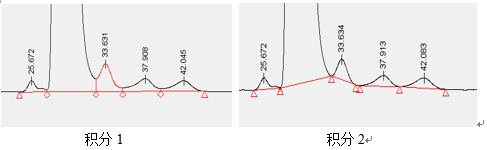 本例中的回收率偏高的原因是基质的影响,那么如果供试品的本底在定量限水平远远不会影响到回收率的结果,那么还有哪些原因会导致回收率偏高呢,排查仪器设备,玻璃器具,操作不当等在外,原因包括,①对照品影响,对照品开启时间较长吸潮,或者对照品的使用不当(部分对照品会标注干燥后使用),这样造成测得值的结果偏高,回收率偏高。②杂质B与主峰的分离度基线分离(分离度1.9),杂质B的限度为0.5%,回收率的限度要求为90-108%,如下图所示(杂质B的保留时间为33.6min),那么,积分方式的选择就对测定结果的影响较大,本例中以外标法定量,对照品溶液与供试品加标溶液的积分方式完全一致,模拟一下积分方式变化对结果的影响过程:杂质B的加入浓度为1,对照品溶液中杂质B的峰面积为5000,那么A/C为5000,供试品加标溶液中杂质B为6000,测得100%水平回收率为120%。当调整积分方式为峰谷到峰谷之后,对照品溶液中杂质B的峰面积为4800,那么A/C为4800,供试品加标溶液中杂质B为5000,测得100%水平回收率为104%。