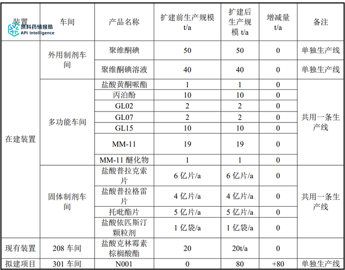 扩建前后产品方案