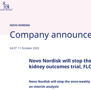 根据停止试验的决定,将启动试验结束程序。为了保护试验的完整性,诺和诺德在试验完成之前对结果不知情。诺和诺德预计 FLOW试验数据将于 2024 年上半年公布。