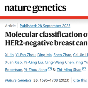 2023年9月28日(当地时间),复旦大学附属肿瘤医院邵志敏、江一舟教授团队,与复旦大学生命科学学院和人类表型组研究院、上海市生物医药技术研究院研究团队合作,于国际知名期刊Nature Genetics发表题为“Molecular classification of hormone receptor-positive HER2-negative breast cancer”的研究论文。该研究绘制出了腔面型乳腺癌多组学图谱,并提出基于腔面型乳腺癌“复旦四分型”的精准治疗策略,为乳腺癌的精准治疗提供了新思路。