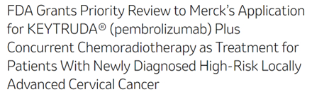 相对于Humira的美人迟暮,K药似乎仍然延续了2022年的强劲势头,根据MSD公布的2023Q1和Q2财务数据我们可知,Keytruda2023年第一季度销售额就达到了58亿美金,同比增长20%,第二季度为63亿美金,同比增长19%。如果按照此数据预测,2023年Keytruda全年的销售额将可能达到250亿美金,而另一个好消息就是,默沙东今年9月宣布K药的补充生物制品许可申请(sBLA)获FDA优先审评,适应症为联合同步放化疗治疗新诊断的高风险局部晚期宫颈癌患者。而宫颈癌目前是全球女性第四大常见癌症,据统计2023年美国约有1.4万例宫颈癌新发病例和4000例死亡病例。适应症的增加无疑会进一步刺激K药的销售。