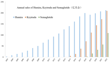 如果要问,什么药物是人类制药史上最赚钱的药物,那毫无疑问是Humira,自2003年初在美国上市以后,Humira已为Abbvie带来了超过2000亿美金的总收入。但蝉联了11年“药王”宝座的Humira,今年似乎有点美人迟暮,由于美国专利于2023年到期,且美国是Humira的主要市场,Humira在今年迎来了专利悬崖,据Abbvie发布的第一季度和第二季度财报显示,Humira2023年第一季度净收入35.41亿美金,同比下降25.2%,第二季度净收入40.12亿,同比下降25.2%。据此数据预测,Humira2023年全年的净收入可能会定格在160亿美金左右,而包括Amgen及Samsung等公司的9款生物类似药也会在今年全部涌入美国市场,其中Amgen公司的Amjevita早在2016年就获得FDA的批准,但由于专利的问题只能推迟到今年1月上市。面对强劲的K药以及新晋网红司美格鲁肽,昔日的药王似乎并没有什么还手的余地。