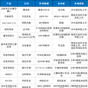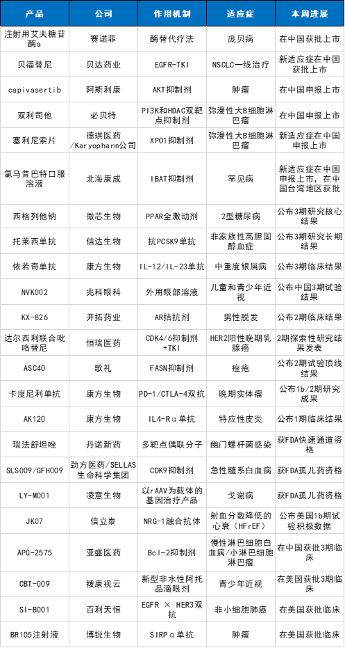 注:本表为《医药观澜》根据公开资料梳理,表格仅列举了本周部分新药进展,仅供参考。