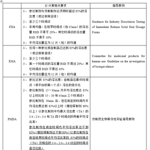 目前国内口服普通制剂溶出曲线通常均要求最大溶出值达到85%以上,但对于某些肠溶制剂,在特定溶出液中无法达到相关要求,个人认为可以参照PMDA的相关要求,进行评价,PMDA相关要求如下表所示: