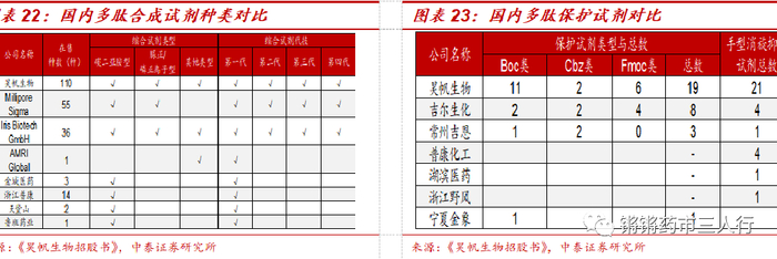 ③行业格局:根据昊帆生物招股书数据,目前国内多肽合成试剂多为第一代产品,昊帆是少数实现规模化量产且品种齐全的多肽合成试剂生产商。