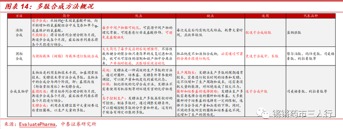 ①多肽药物生产壁垒:目前多肽药物主要由液相、固相、生物发酵叠加液相三种主流化学合成方法制备。其生产壁垒主要为:合成难度较大,收率较低:源于其是一个重复添加氨基酸的过程,随着肽链的增长,需要的循环偶联也越多,对长链多肽药物而言,其合成过程往往需要经过10~100步化学反应,副反应较多,极容易出现错接肽、消旋肽、缺失肽等较多且较大的杂质,导致合成及生产过程的效率和收率较低。纯化难度较高:合成后取得的粗品中杂质相当复杂,如通常利拉鲁肽反应后杂质数量往往多达100种以上,需多次纯化(通常需要4步),收率损失较大(总体收率能达20%左右已属于较高水平),因此纯化技术亦成为多肽药物制备的另一关键步骤和技术难点。放大效应导致合成路线需重新摸索:在工艺放大生产过程中,放大效应使多肽药物规模化生产时对合成工艺和生产控制的要求较高。行业内大部分企业收率较低,单批次产量仅能达到克级、百克级的水平,难以实现大规模生产。因此相比创新药企,拥有多肽药物生产平台、掌握大量生产know how的多肽C(D)MO有望承接更多订单,行业外包渗透率有望持续提升。