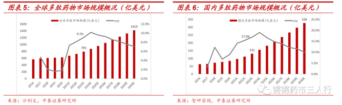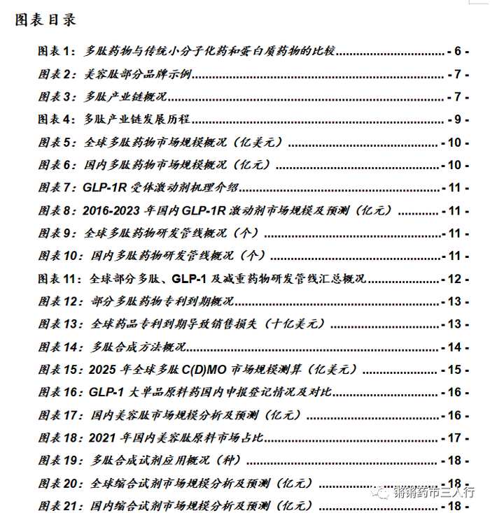 ■1)多肽药物因GLP-1R激动剂的减重等新适应症持续放量有望迎来新一轮增长: