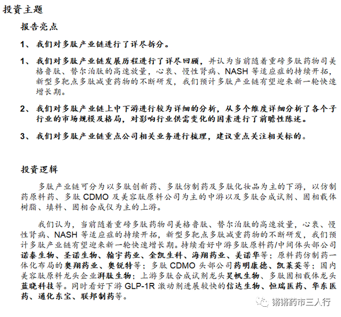 【中泰医药|行业深度】多肽产业链系列深度:多因素驱动下游需求旺盛,中上游有望率先获益