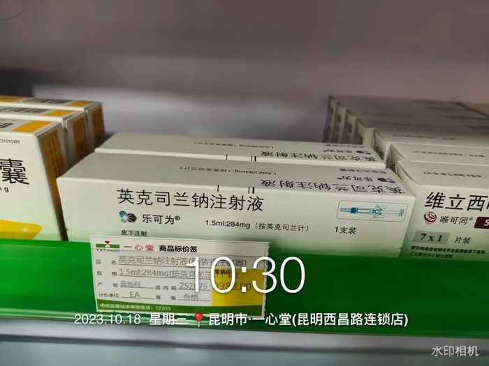 2023年10月18日,首单新型降脂药〈英克司兰钠注射液〉顺利于一心堂(昆明西昌路店)售出。