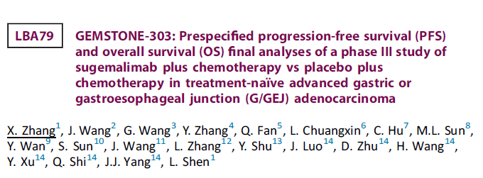 2023年欧洲肿瘤内科学会(ESMO)大会将于当地时间10月20日在西班牙马德里盛大召开。本届大会上,基石药业抗PD-L1单抗舒格利单抗(sugemalimab)的一项多中心、随机、安慰剂对照的3期注册性临床试验GEMSTONE-303入选了最新突破摘要(Late-breaking Abstract,LBA)报告,该研究旨在评估舒格利单抗联合CAPOX化疗方案(奥沙利铂+卡培他滨)作为晚期胃或胃食管结合部(G/GEJ)腺癌患者一线治疗的疗效和安全性。根据ESMO官网大会公示信息,这是首个报道的针对这种疾病的抗PD-L1单抗的3期试验,该研究达到了无进展生存期(PFS)和总生存期(OS)的双重主要终点。