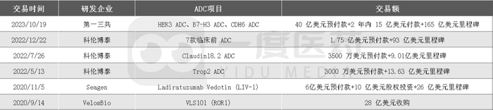 6项交易,拥有14款ADC药物