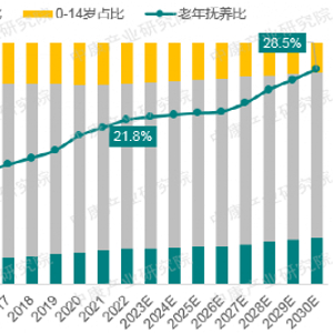 中国是世界上首个老年人口突破2亿的国家,老龄化趋势仍在持续加深。根据中康产业研究院预测,2030年,老年人口将达2.7亿人,占比19.4%;老年人口抚养比将达28.5%,相当于每100名劳动人口将要负担28名老年人。