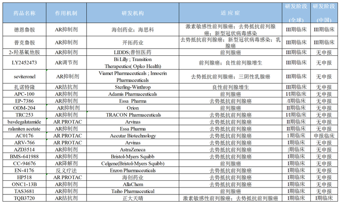 部分AR抑制剂相关研发管线