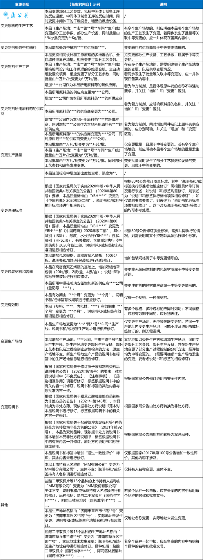 (1)如根据国家药品监督管理局公告修订说明书,需要将公告中的内容与原批准说明书中内容逐条进行对比分析,避免遗漏、重复和歧义;并提供变更前后对比表。