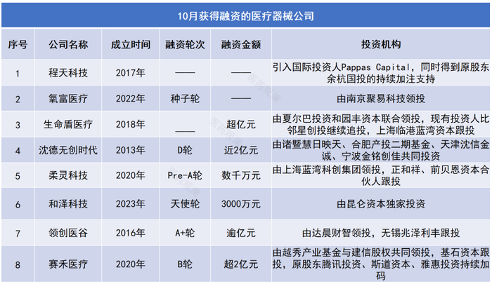 8家创新医疗器械公司获得融资!