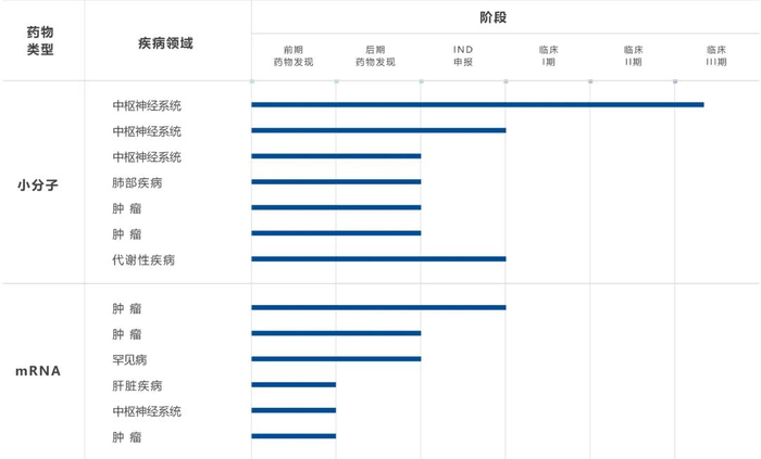 剂泰目前已通过自有平台快速搭建了10余条药物管线,涵盖小分子药物和以mRNA为基础的核酸药物,重点布局肿瘤免疫及罕见病等方向。
