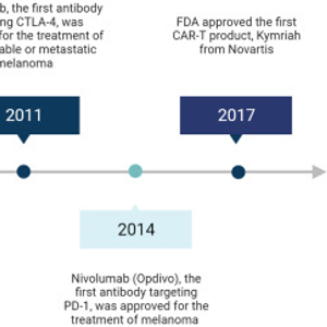 据统计,目前肿瘤是全球最为热门的药物研发领域。其中,肿瘤免疫治疗旨在通过激发或重建机体的免疫系统,从而控制和杀伤肿瘤细胞,显示出强大的治疗潜力,被认为是继传统治疗、靶向治疗之后,肿瘤治疗史上的第三次革命,以及未来肿瘤治疗的重要发展方向。2013年,肿瘤免疫治疗被《科学》杂志列为年度10大科学突破之首。