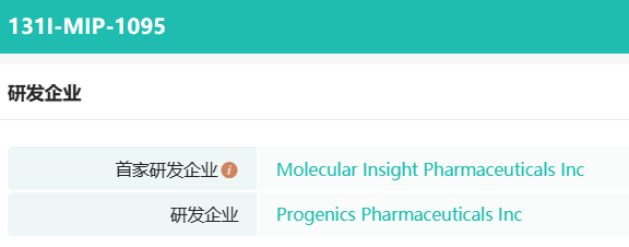 LNTH-1095(也称为MIP-1095)是一种靶向PSMA、碘-131标记的小分子放射性配体药物,被开发用于治疗mCRPC。该疗法将PSMA靶向配体LNTH-1095与发射β射线的放射性同位素碘-131结合,旨在将一定剂量的β射线直接递送到前列腺癌细胞,且对周围健康组织的影响最小。目前,LNTH-1095正在美国和加拿大开展一项2期临床试验(ARROW研究,NCT03939689)。该研究是一项多中心随机对照研究,旨在评估放射性药物LNTH-1095与恩扎卢胺联合治疗mCRPC的有效性与安全性。药融圈旗下药融云数据www.pharnexcloud.com显示,该药物来自于Lantheus在2020年收购的Progenics公司,首家研发企业为Molecular Insight Pharmaceuticals,该公司在2013年被Progenics收购。