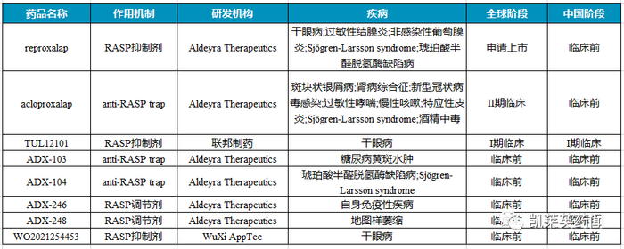 在正常条件下,RASP会被醛脱氢酶或醛还原酶代谢,防止其与其他分子或蛋白质发生反应。据不完全统计,目前有8种RASP相关药物正在开发中。