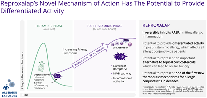 Reproxalap的作用机制已经在多个不同适应症的后期临床试验得到了具有统计学意义和临床相关活性的证明。