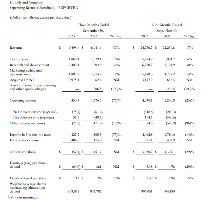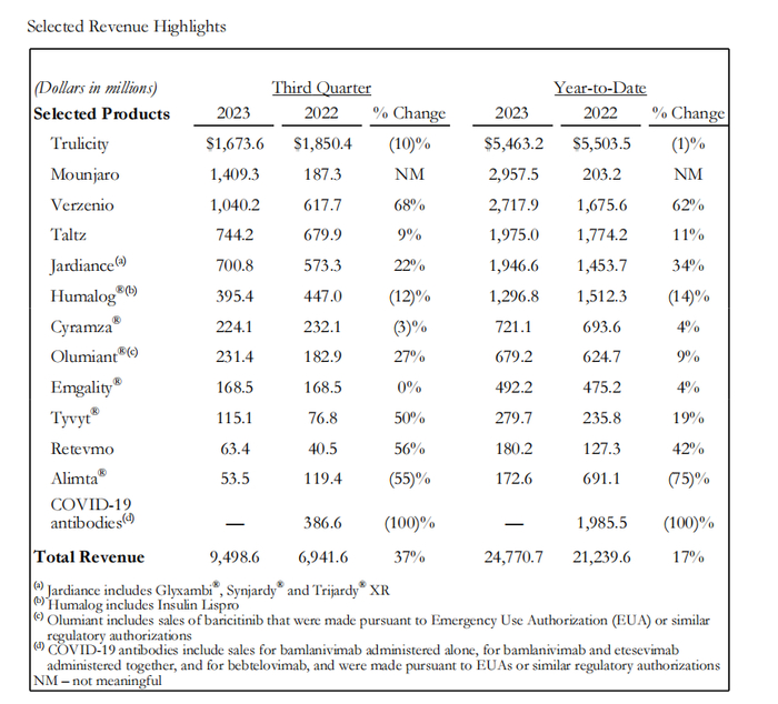 参考资料:礼来第三季度财报