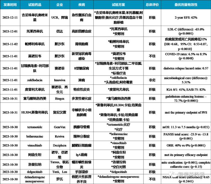 全球III期临床汇总