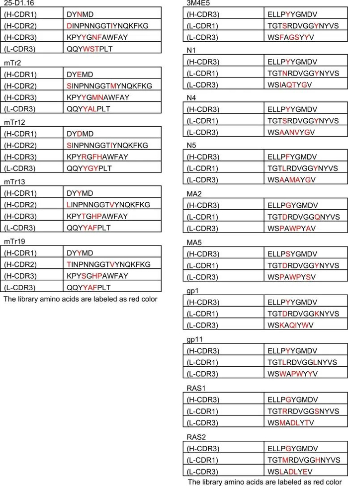 该策略解决了目前用于分离TCRm抗体的两个问题:第一,使用文库的从头筛选来“getting on the beach”的经典蛋白质工程问题。为了筛选针对典型细胞表面靶点的拮抗剂单抗,其中许多结构方案(即靶表位)同样有效,从单抗活动中获得的产量通常很高。然而,随机筛选的TCRm抗体筛查命中率通常很低,因为TCR-like、MHC限制性的结构解决方案很少见。幼稚抗体不具有以TCR-like的方式与pMHC结合的倾向,并且更有可能结合MHC表面的替代表位。事实上,许多TCRm单抗的结构显示它们向MHC凹槽的一端倾斜、偏离或结合,在那里多肽对MHC接触的能量分布将是非理想的。通过从具有理想的TCR-like结合足迹的TCRm单抗开始,可以有效地“on the beach”,并可以绕过随机的筛选过程。幸运的是,已经报道了足够数量的TCRm Ab/pMHC复合晶体结构,其中有几种理想的结合模式。然而,更多的复合体的结构,很容易通过X射线结晶学获得,将极大地扩展起始模板的列表,为更多的MHC等位基因创建MHC偏向文库。
