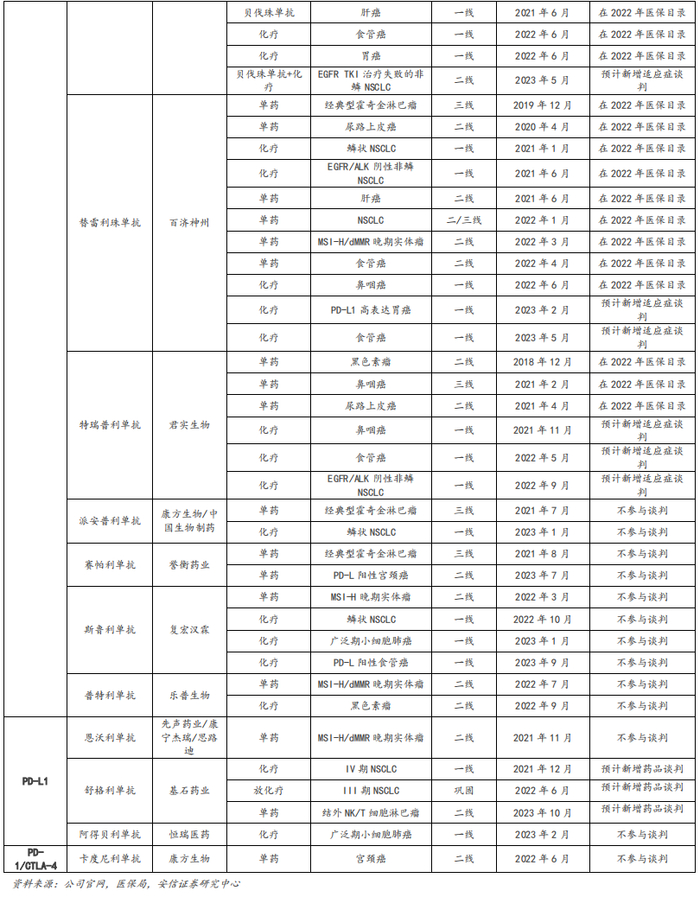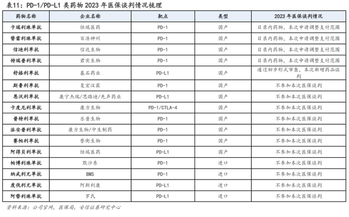 2.1.PD-1/PD-L1药物:5款参与谈判,11款不参与医保谈判
