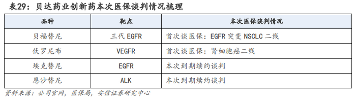 贝达药业在本次医保谈判中有贝福替尼、伏罗尼布等产品进行首次医保谈判;有埃克替尼、恩沙替尼等产品进行医保到期续约谈判。