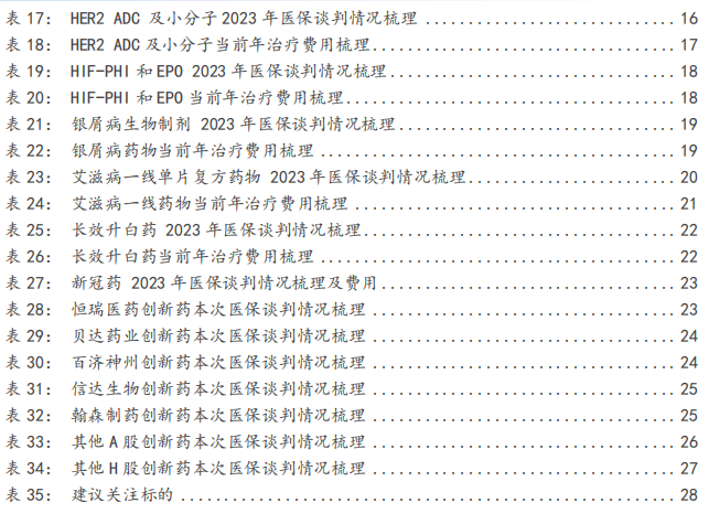 ■重点谈判品种&重点公司谈判情况梳理:重点谈判品种方面,PD-1/PD-L1类药物、三代EGFR TKI、HER2 ADC、肾性贫血药物、银屑病生物制剂、艾滋病药物、长效升白药等多个品种的谈判值得关注;重点公司方面,恒瑞医药、贝达药业、百济神州、信达生物、翰森制药,以及其他A股艾迪药业、特宝生物、信立泰、益方生物、亿帆医药、荣昌生物、君实生物、艾力斯、泽璟制药等公司,H股康哲药业、和黄医药等公司均有相关药物参与本次医保谈判,未来产品若能顺利纳入医保目录则有助于其长期放量。