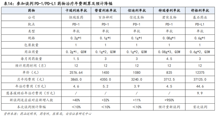 2)谈判PD-1/PD-L1药物当前年治疗费用