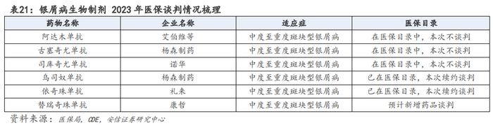1)康哲药业:替瑞奇珠单抗今年首次参加医保谈判,本次谈中度至重度斑块型银屑病。