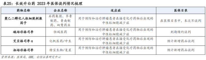 2)恒瑞医药:硫培非格司亭已在医保目录,今年进行续约谈判;