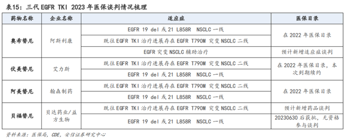 3)贝达药业/益方生物:贝福替尼今年首次参加医保谈判,本次谈NSCLC二线适应症,预计NSCLC一线适应症2024年有资格参与医保谈判。