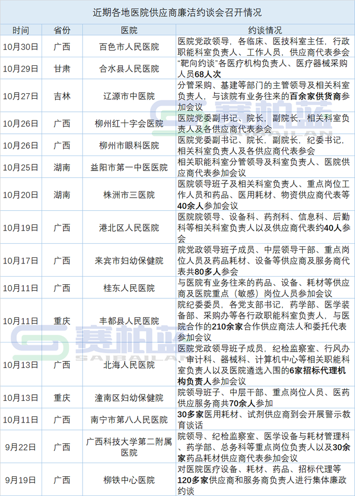 多地医院针对药械供应商展开约谈会,涉490余家药企医药代表。