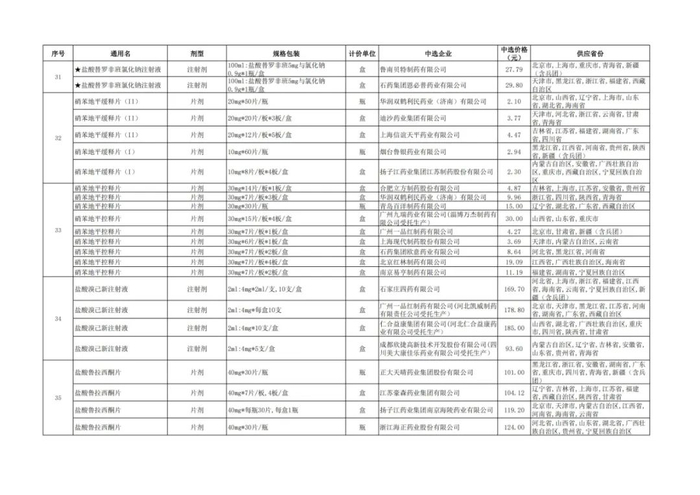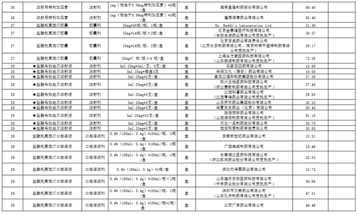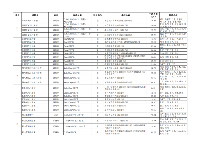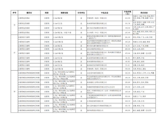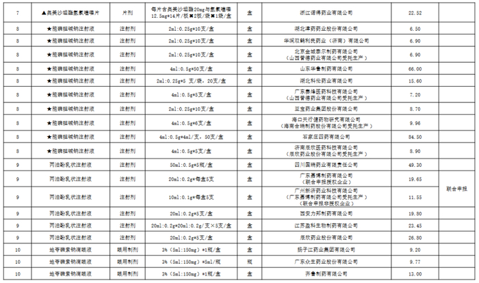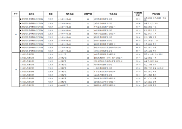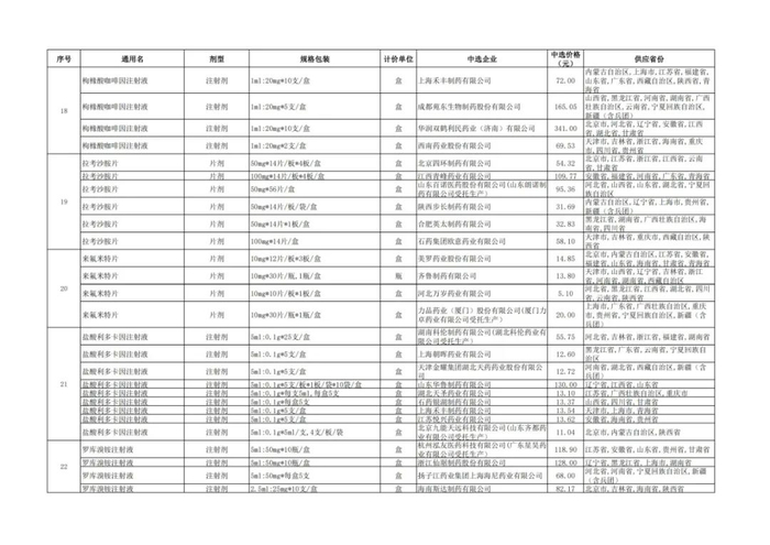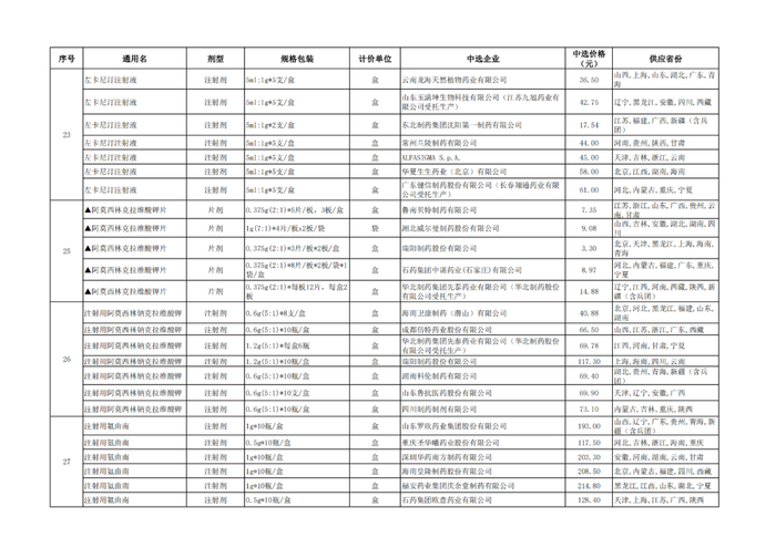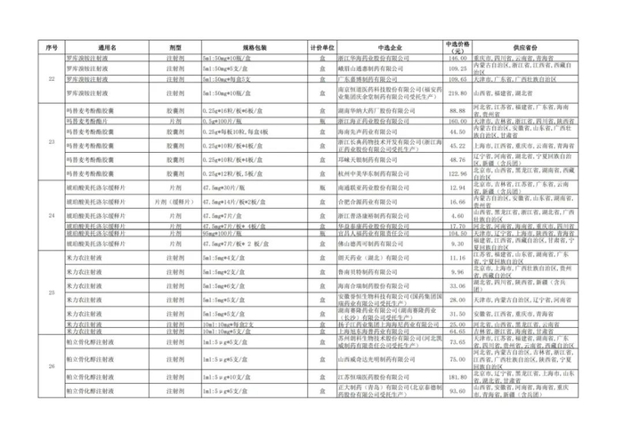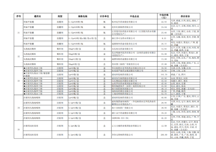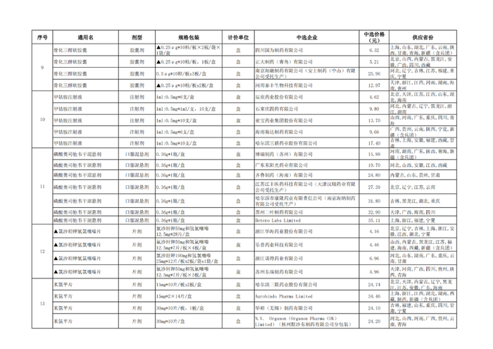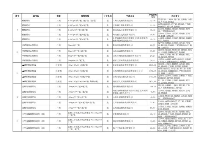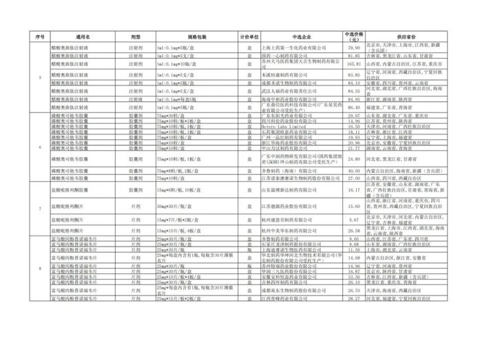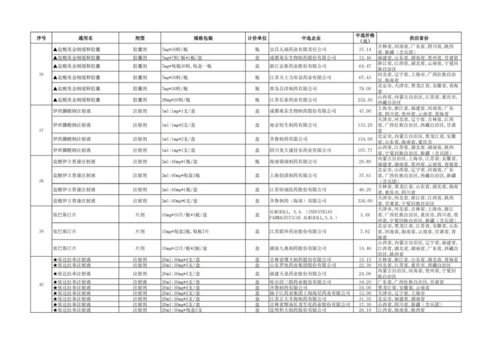 附:九批国采品种中选品种