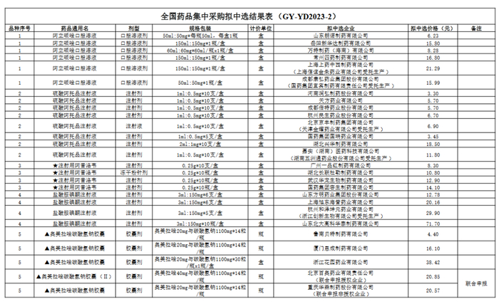 (3)国采中选、执行时间公布