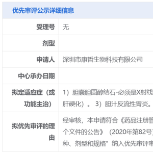 康哲生物申请的「熊去氧胆酸口服混悬液」拟纳入优先审评