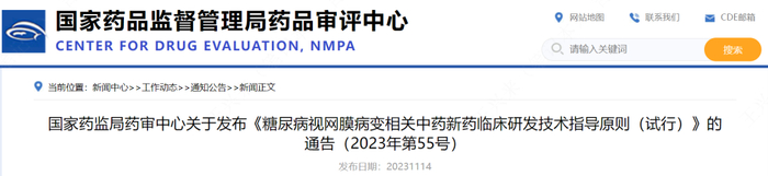 2023年11月14日,为引导申请人按照“三结合”中药注册审评证据体系研发符合中医药治疗优势和特点的糖尿病视网膜病变相关中药新药,药审中心组织制定了《糖尿病视网膜病变相关中药新药临床研发技术指导原则(试行)》,自发布之日起施行。