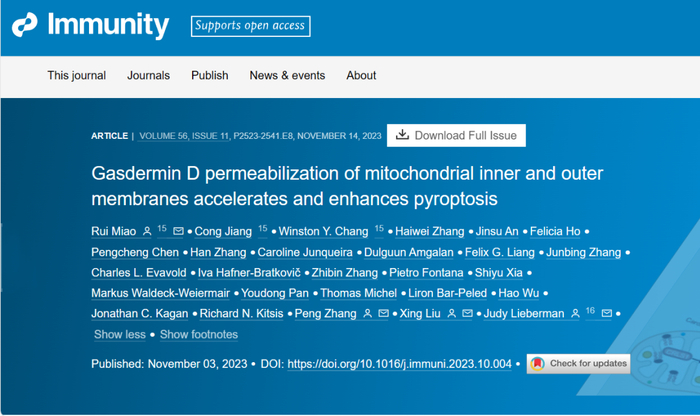 Immunity 封面文章|刘星课题组合作研究揭示焦亡细胞线粒体损伤新机制