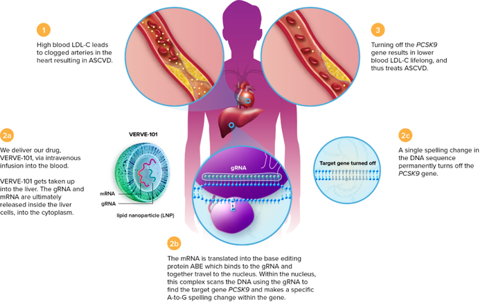 Verve 公司在10名患有危及生命的杂合子家族性高胆固醇血症(HeFH)患者中试验了Verve-101 疗法,这些患者从出生起就伴随着 LDL 水平升高,有些在儿童时期出现了心脏病发作,他们还患有严重的晚期冠状动脉疾病,因此需要服用最大剂量的降脂药,例如他汀类药物。