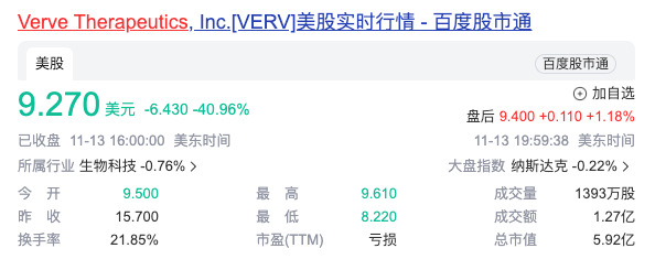 然而,这次临床试验中有两起严重不良事件,其中包括一起死亡事件,这引发了外界对于该疗法安全性的担忧。Verve 的股价在临床试验结果公布后暴跌超过40%,市值降至不足6亿美元,一天后其股价适度恢复,最新市值为6.87亿美元。