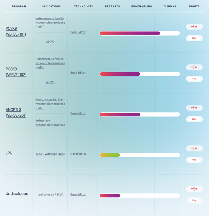 值得一提的是,就在上个月,礼来公司与碱基编辑公司 Beam Therapeutics 达成了总额6亿美元的合作,其中预付款高达2.5亿美元,以获得 Beam 持有的 Verve 开发的碱基编辑疗法的选择权。包括两款靶向 PCSK9 的碱基编辑疗法,靶向 ANGPTL3 的碱基编辑疗法,治疗高脂蛋白a的动脉粥样硬化心血管疾病的新型基因编辑疗法,以及一款未公开靶点的碱基编辑疗法。