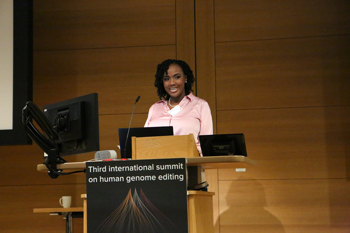 ▲Victoria Gray女士在人类基因组编辑国际峰会上演讲(Courtesy THE ROYAL SOCIETY;图片来源:参考资料[2])